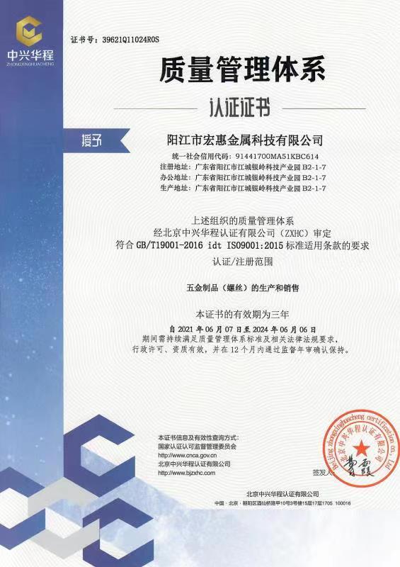 廣東宏惠金屬公司是家20多年一直專注鉆尾螺絲開發(fā)與生產(chǎn)的企業(yè),是國內(nèi)較早做鉆尾的廠家之一,同時也是國內(nèi)專業(yè)開發(fā)生產(chǎn)鉆尾螺絲的企業(yè)之一。 我司地址為于廣東省陽江市江銀嶺科技園距沈海高速白沙出口不到2公里,距陽江高鐵站也只有十余公里交通便利。 公司占地120畝,擁有超500臺套專業(yè)設(shè)計 生產(chǎn) 檢測設(shè)備。一個超200人的專業(yè)團(tuán)隊,能夠嚴(yán)格按照ISO9001質(zhì)量體系要求生產(chǎn)符合GB DIN AS3566 ANSI JIS BS等標(biāo)準(zhǔn)的產(chǎn)品,生產(chǎn)銷售各種高品質(zhì)緊固件系列產(chǎn)品,為中高端客戶提供優(yōu)質(zhì)服務(wù)。也可按照客戶要求設(shè)計生產(chǎn)各種鉆尾,年產(chǎn)高品質(zhì)碳鋼 不銹鋼鉆尾螺絲2萬余噸.在各大客戶的鼎力支持下產(chǎn)品暢銷全國,并遠(yuǎn)銷亞 非 拉 歐等地,在這20多年發(fā)展的道路上我司堅持“以質(zhì)量求生存,以信譽(yù)求發(fā)展”的精神理念不斷完善公司體系。